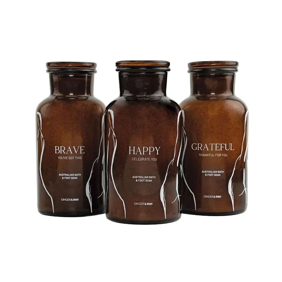 Ginger & Me Bath & Foot Soak Salts encourage a daily ritual of washing away your worries and going to sleep with a peaceful mind. Whilst there is nothing more relaxing than immersing your body in a bath before bed, a foot soak has been proven to not only relieve tired feet and muscles after a long day but also detoxify the body, relieve stress and enhance mood.